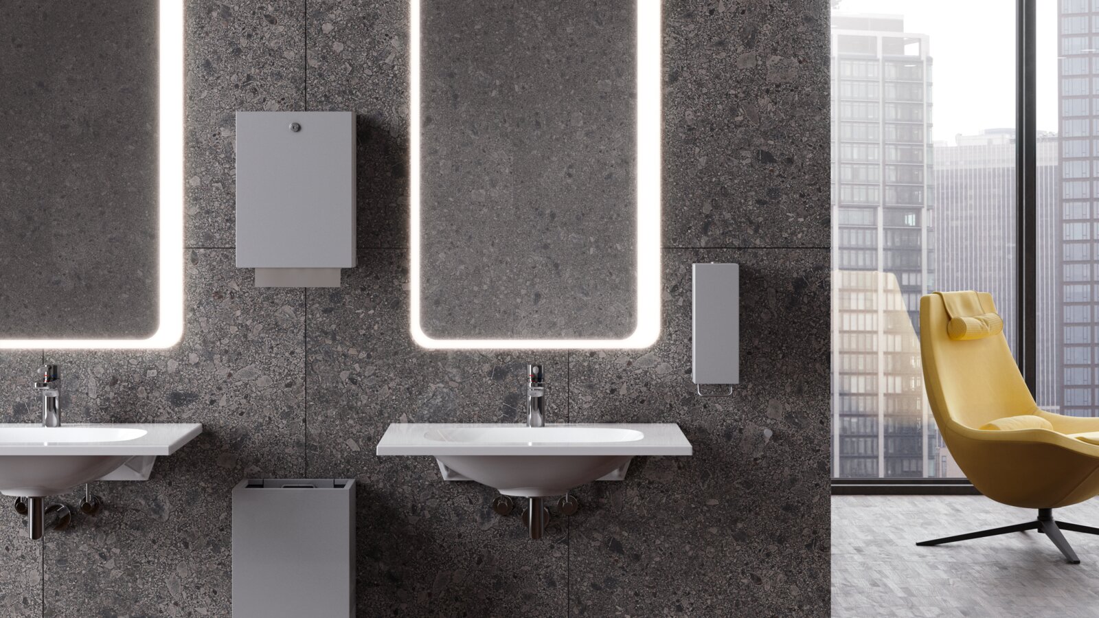 The new HEWI dispenser systems in the sanitary area enable hygiene in public and semi-public areas to be increased and at the same time meet the highest standards of design and functionality.