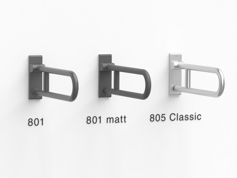 HEWI’s range of mobile hinged support rails has been extended by three more models of the series 801, 801 matt and 805 Classic. In the assembly film you can see how easily a mobile hinged support rail locks into the permanently installed mounting plate.